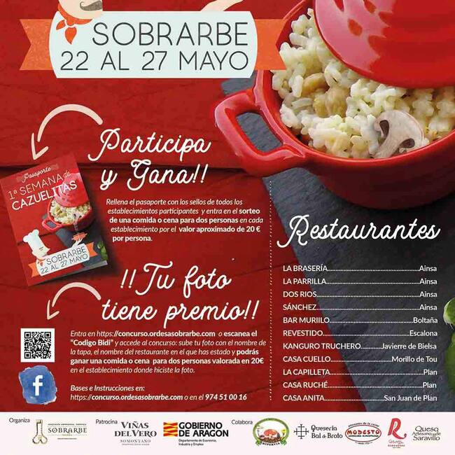 La Asociación turística y Empresarial de Sobrarbe organiza la 1ª Semana de Cazuelitas a la que se han sumado un total de once establecimientos de toda la Comarca de Sobrarbe. Cada uno de ellos ha elaborado al menos una propuesta culinaria, aunque la mayoría ha creado dos cazuelitas para el disfrute de los comensales. Hasta este domingo, se podrá disfrutar de la 1ª Semana de Cazuelitas.