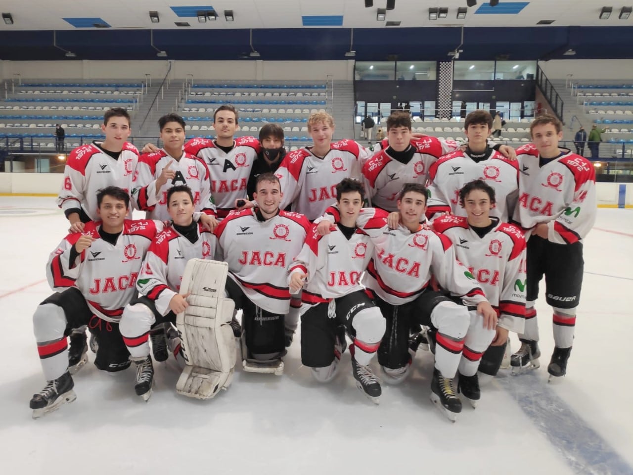 Los jugadores de Jaca estaban en la pista de San Sebastián, habían realizado el primer calentamiento y cuando iban a salir al hielo, el árbitro les comunico que se tenía que suspender el encuentro , porque la máquina que limpia la pista, no arrancaba, y en consecuencia no se podía disputar el partido.