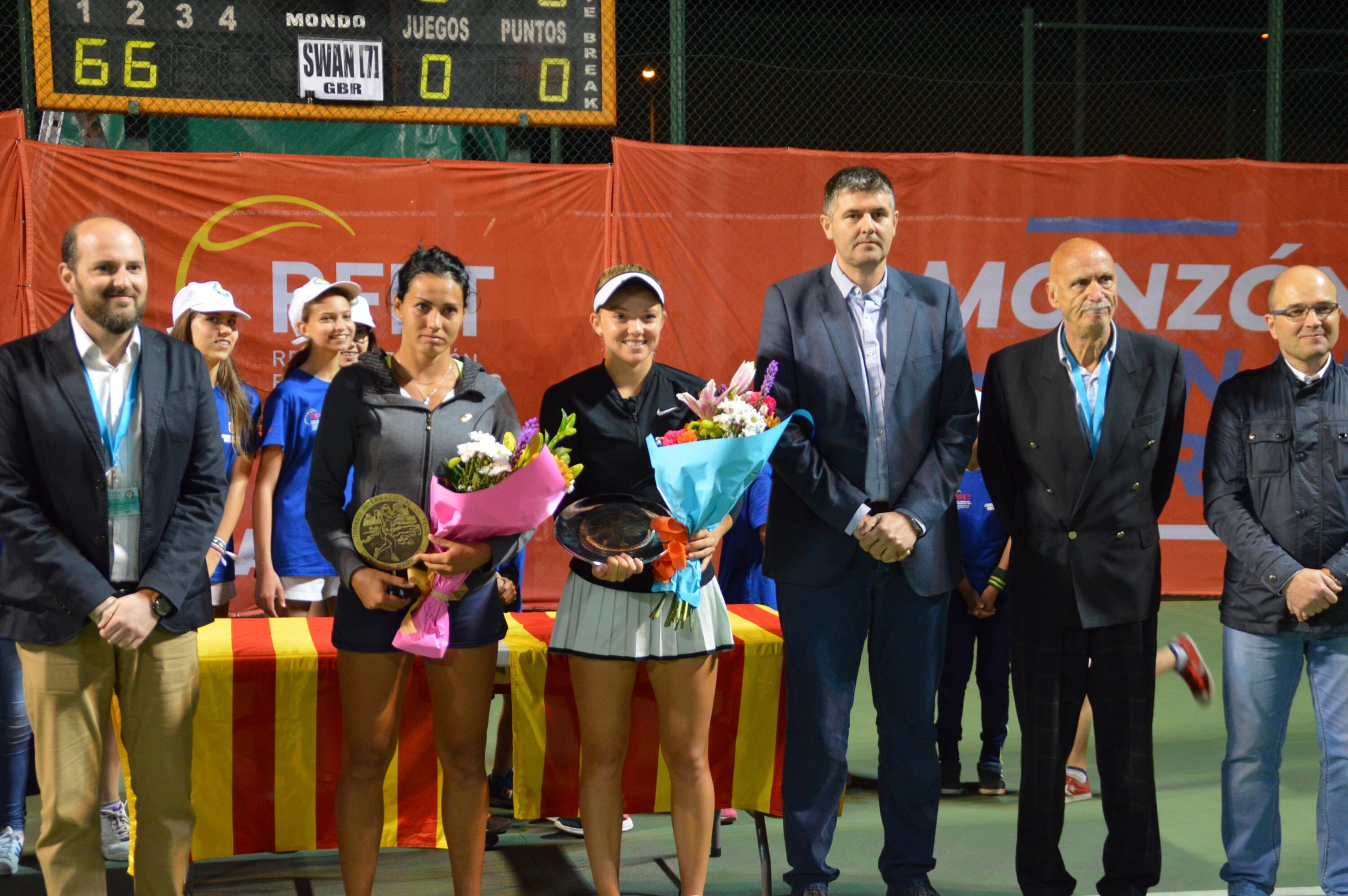 La lluvia retrasaba el inicio de la final del Torneo Internacional Conchita Martínez hasta pasadas las ocho y media de la tarde del sábado. Al final , gracias a la labor del personal de la organización se pudo celebrar el partido entre la española de origen moldavo Aliona Bolsova y la inglesa Katie Swan por un 6-2 6-3.