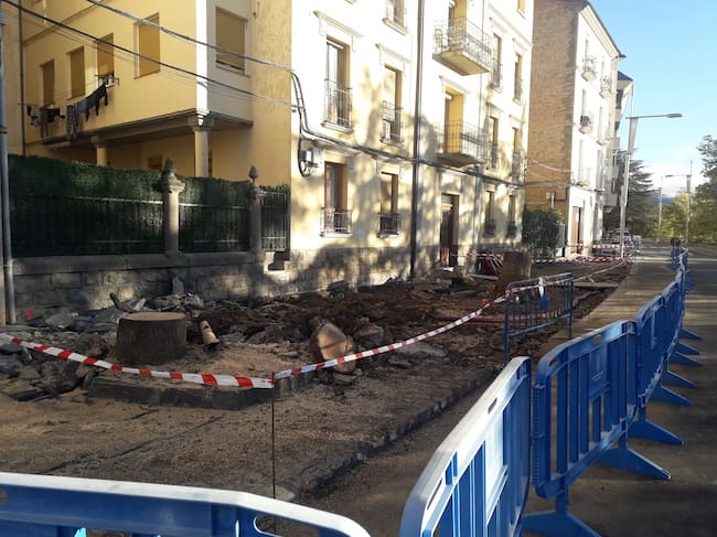 Debido a las obras que se están realizando en la avenida Oroel de Jaca, para mejorar las aceras que estaban en mal estado, se han tenido que talar cuatro cedros de gran amplitud y tamaño, que corrían peligro de derrumbarse y caer sobre las viviendas y la calzada.