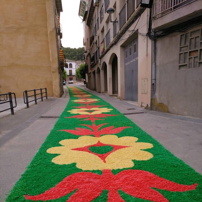 Es una de las pocas localidades españolas que realizan alfombras con motivo de la celebración del Corpus Christi