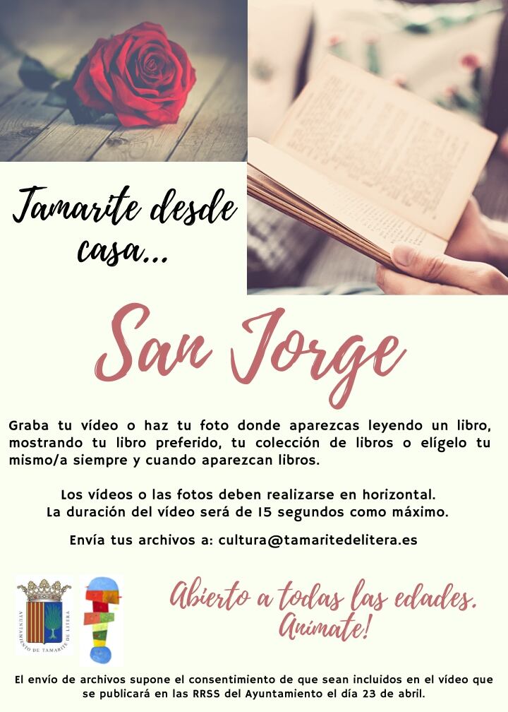 “Tamarite desde casa…San Jorge” es la propuesta que ha realizado la concejalía de Cultura para celebrar el día de Aragón y el día internacional del libro. Los archivos hay que enviarlos hasta el día 22 de abril.