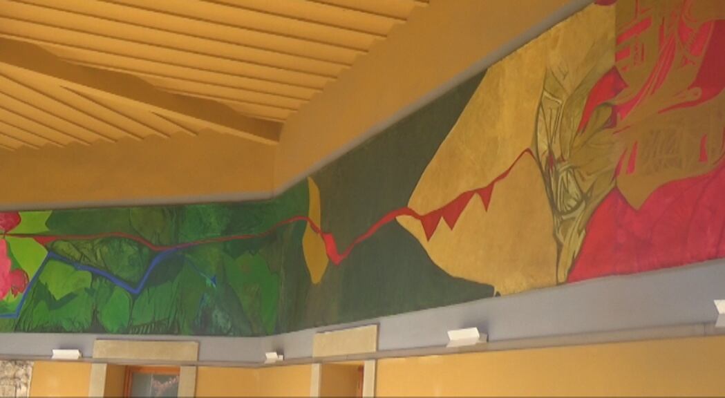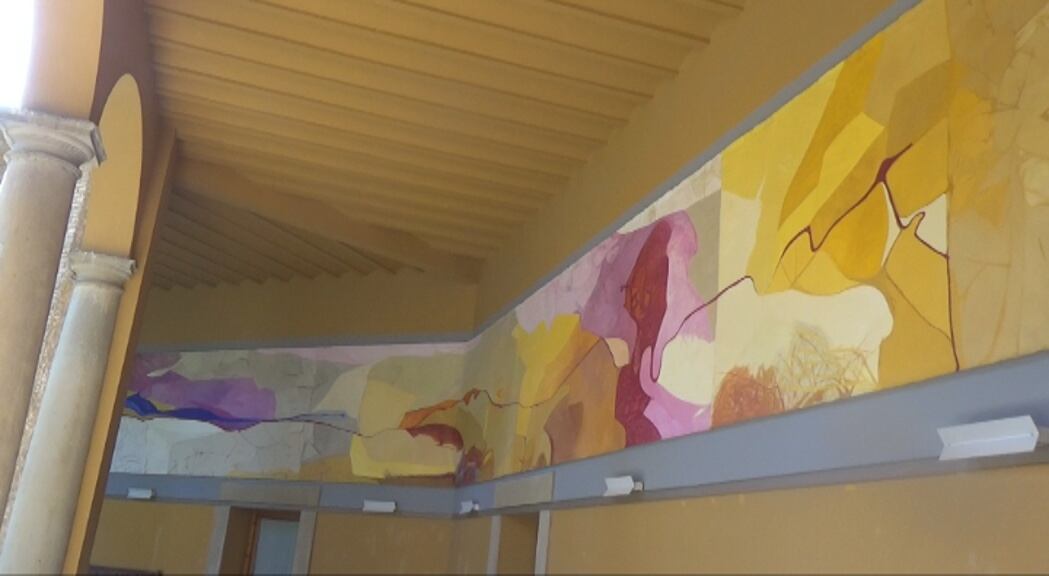 Teresa Ramón pinta su vida en un mural que se expone en el Museo de Huesca