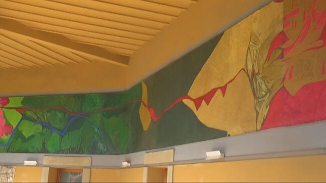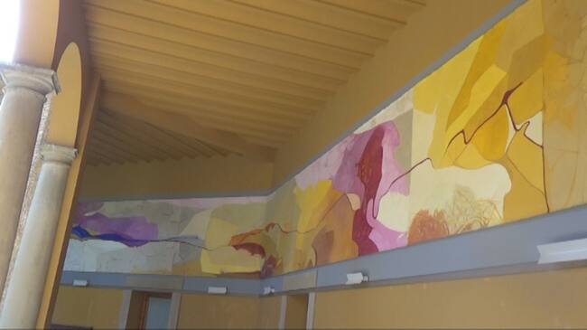 Teresa Ramón pinta su vida en un mural que se expone en el Museo de Huesca