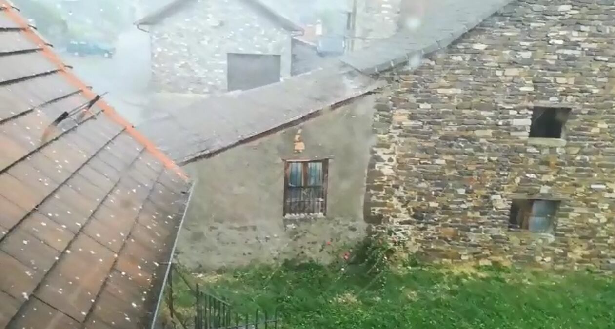 Este viernes por la tarde en tan sólo 5 minutos una tormenta de granizo dejaba blancos algunos puertos de los valles occidentales. Afectaba a Jasa, donde caían piedras de hielo de un grosor superior a una canica, y, decía su alcalde, José María Miranda, que aunque no había perjudicado a los campos al no ser cereal, sí había podido afectar a los jóvenes terneros, que acaban de nacer y se encuentran en valles en altura, como el de la Estiva.