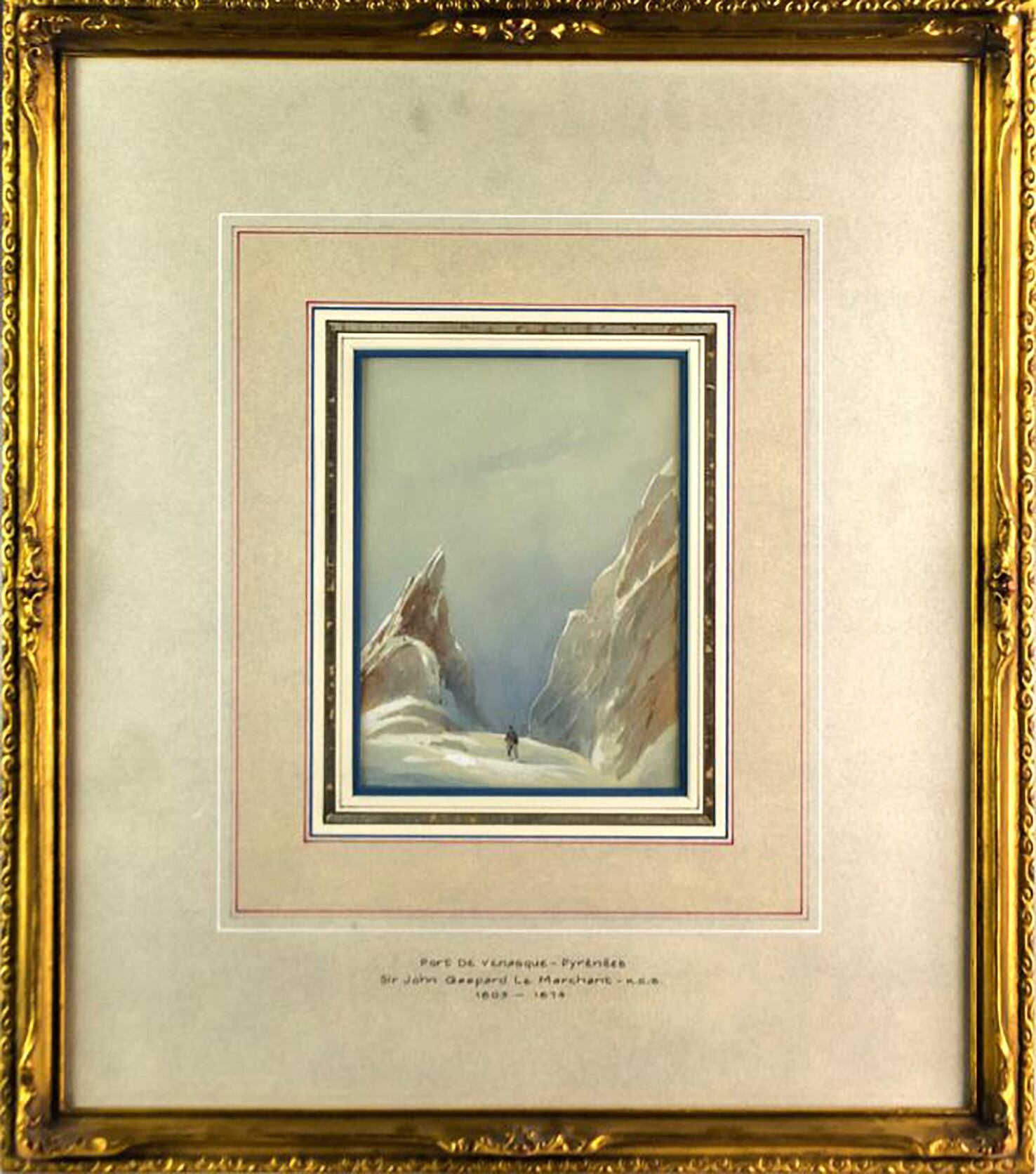 La acuarela es un misterio, y de los pocos datos que se conocen de ella es que, recientemente, fue subastada en Francia. En el paspartú figura, lo que representa la acuarela, Port de Venasque- Pyrénées, y el nombre del teniente general inglés Sir John Gasrpard Le Marchant, que participó en la Primera Guerra Carlista (1833-1840) a favor de los liberales, es decir, del lado de Isabel II, que lo honró con el título de Caballero de la Orden de Carlos III. Bajo el nombre escritos los años 1803 – 1874, años que coinciden con la fecha de nacimiento y muerte del citado Sir Gaspard Le Marchant.