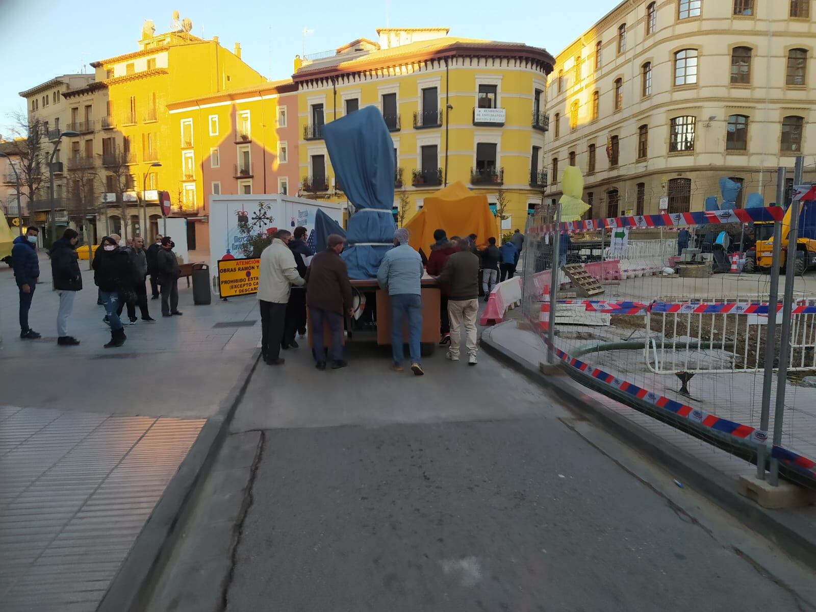 En el de la Entrada de Jesús en Jerusalén había que quitar la paloma sobre el arco, para poder entrarlo. Pero El Calvario y El Descendimiento tenían que ser devueltos a su lugar de origen, guardarlos en el almacén que da a la plaza de Santo Domingo, desde donde podrán ser incorporados a la procesión sin problemas.