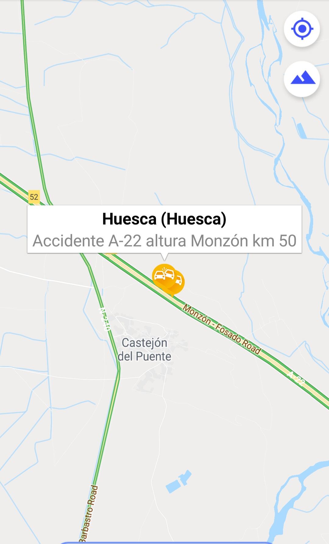 A última hora de este martes, en torno a las 20.45h, se producía un accidente de tráfico en el punto kilométrico 48.200 de la A-22, a la altura de Monzón, que se saldaba con tres heridos graves.
