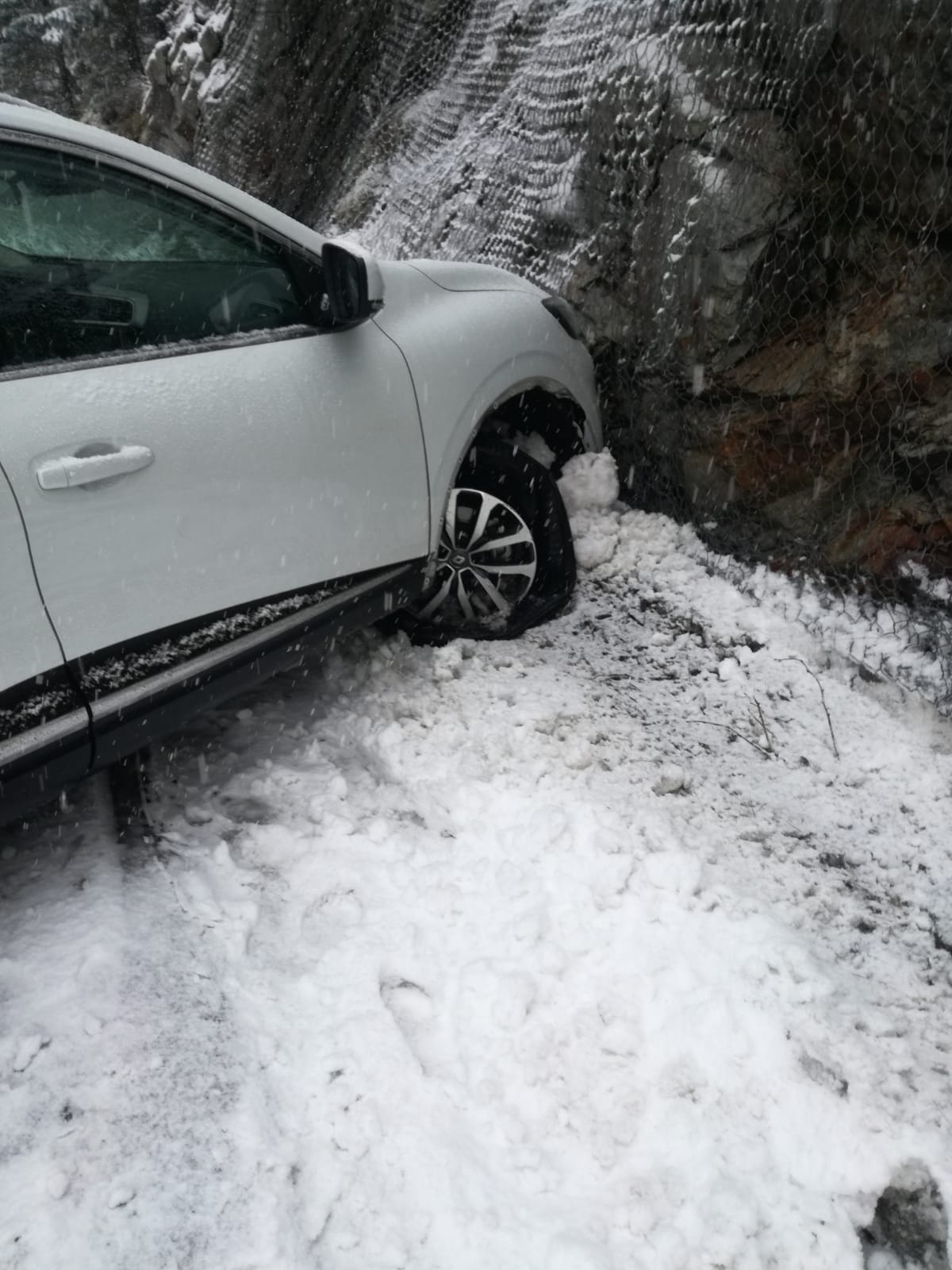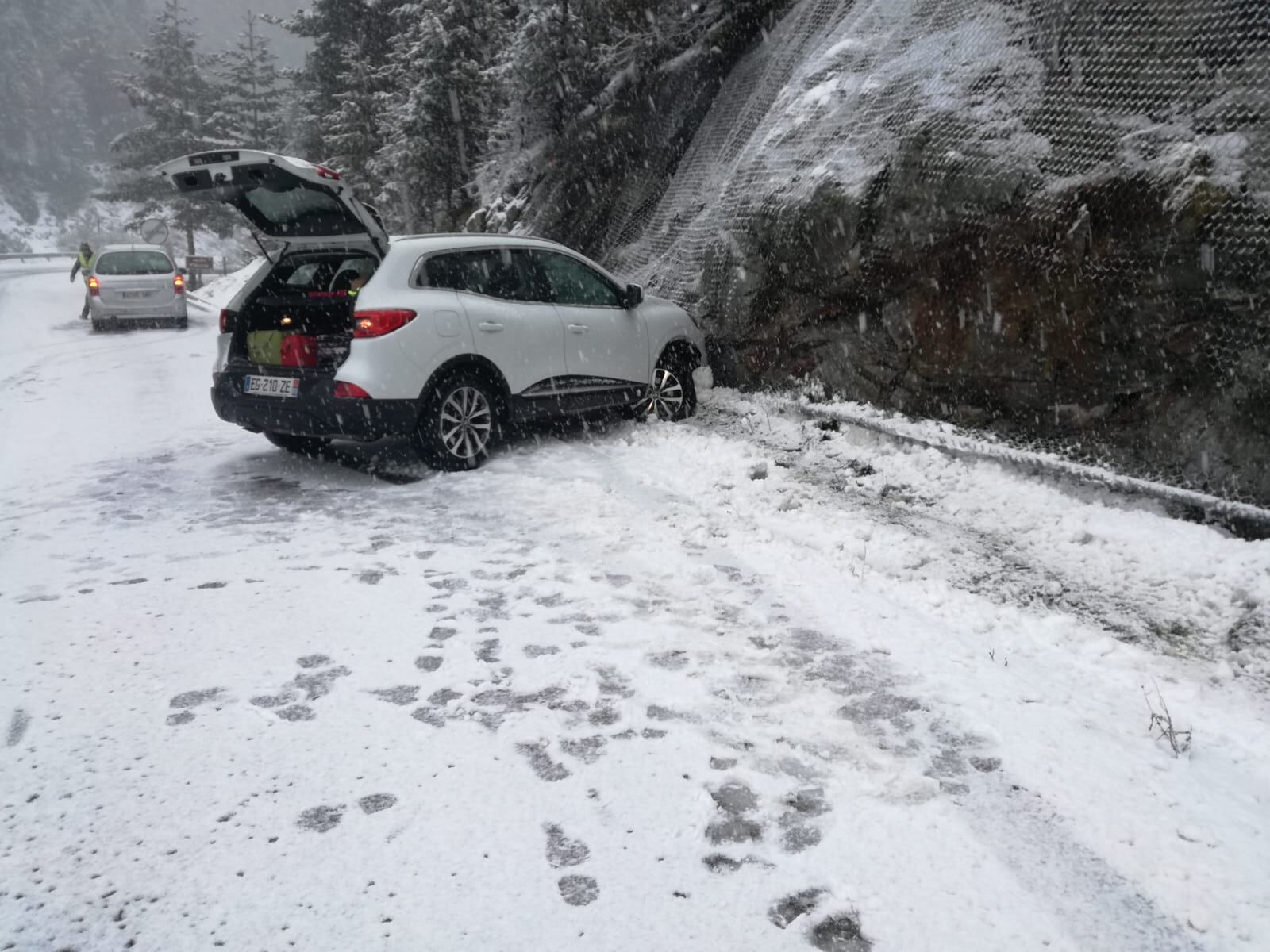 Un turismo se ha salido de la calzada en la vertiente española del túnel de Bielsa-Aragnouet debido al mal estado de la calzada por la nieve. Los ocupantes del vehículo han salido ilesos, aunque la parte delantera del coche ha quedado dañada.