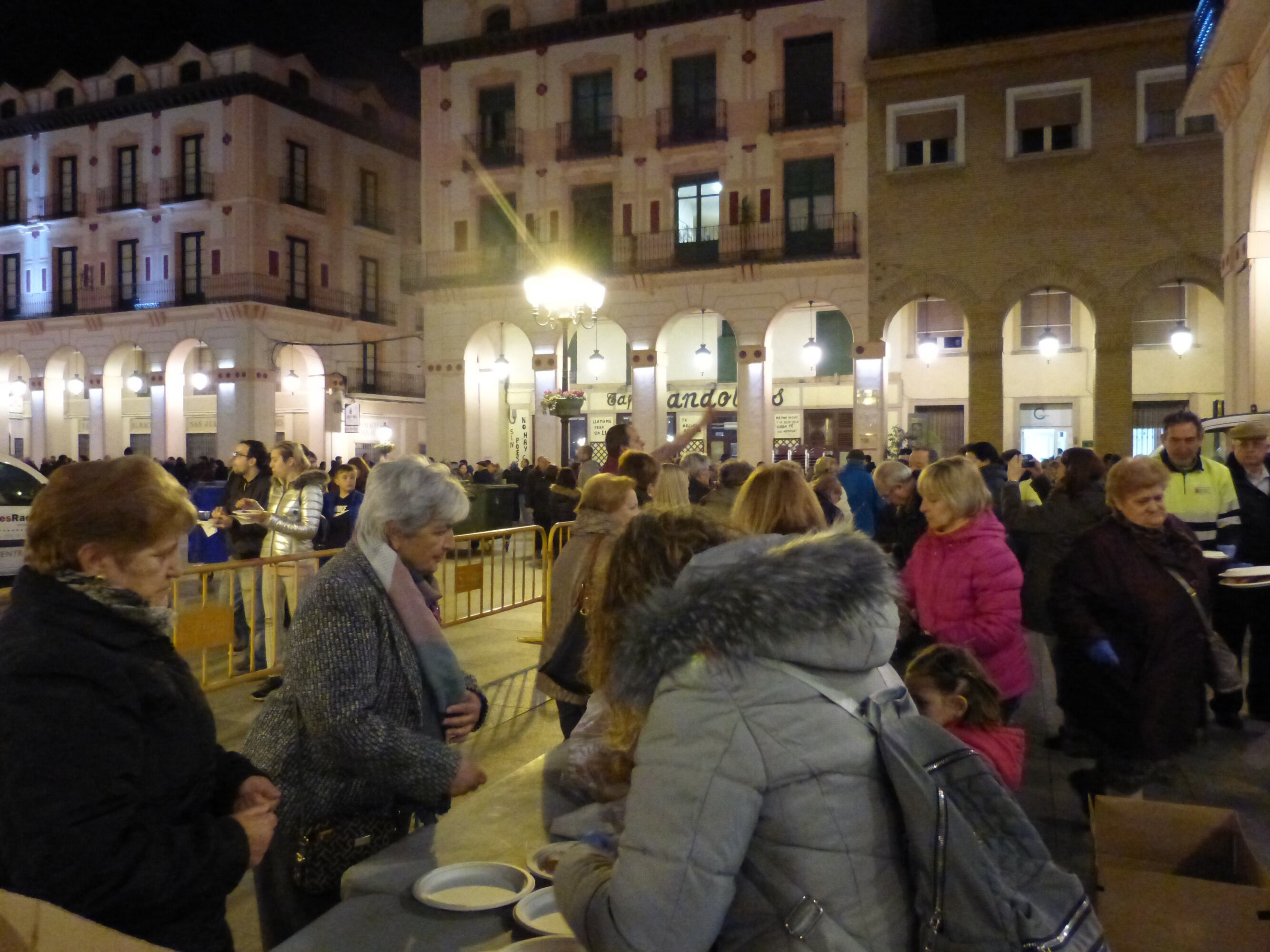 En 2020 y citas anteriores, no era de sorprender la larga fila de oscenses que esperaban para recibir su ración de longaniza acompañada de chorizo agua y vino, repartiéndose alrededor de 1.000 raciones año tras año.