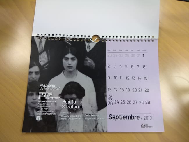 El estudio de arte y diseño de Graus, The Art Factory (TAF), está detrás del calendario Mujeres de Ribagorza con el que han pretendido reconocer la labor de todas las mujeres que fueron, son y serán, un pilar fundamental en la historia del territorio pero que, por unas u otras causas, no han tenido el reconocimiento que merecían. Se trata de doce ribagorzanas, unas de nacimiento y otras de adopción, que ilustran cada uno de los meses de 2019.