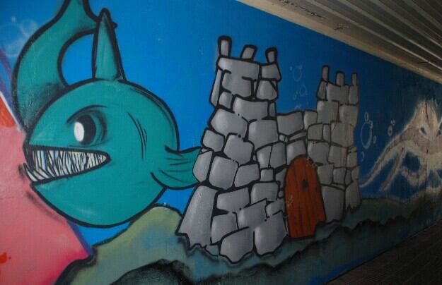 Un enorme grafiti sobre el fondo del mar mejora la estética del pasaje subterráneo de Monzón