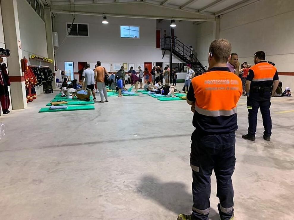 Unas 65 personas han pasado la noche en el cuartel de Bomberos de la localidad tras el fuego que se originó en el cuadro eléctrico de la recepción