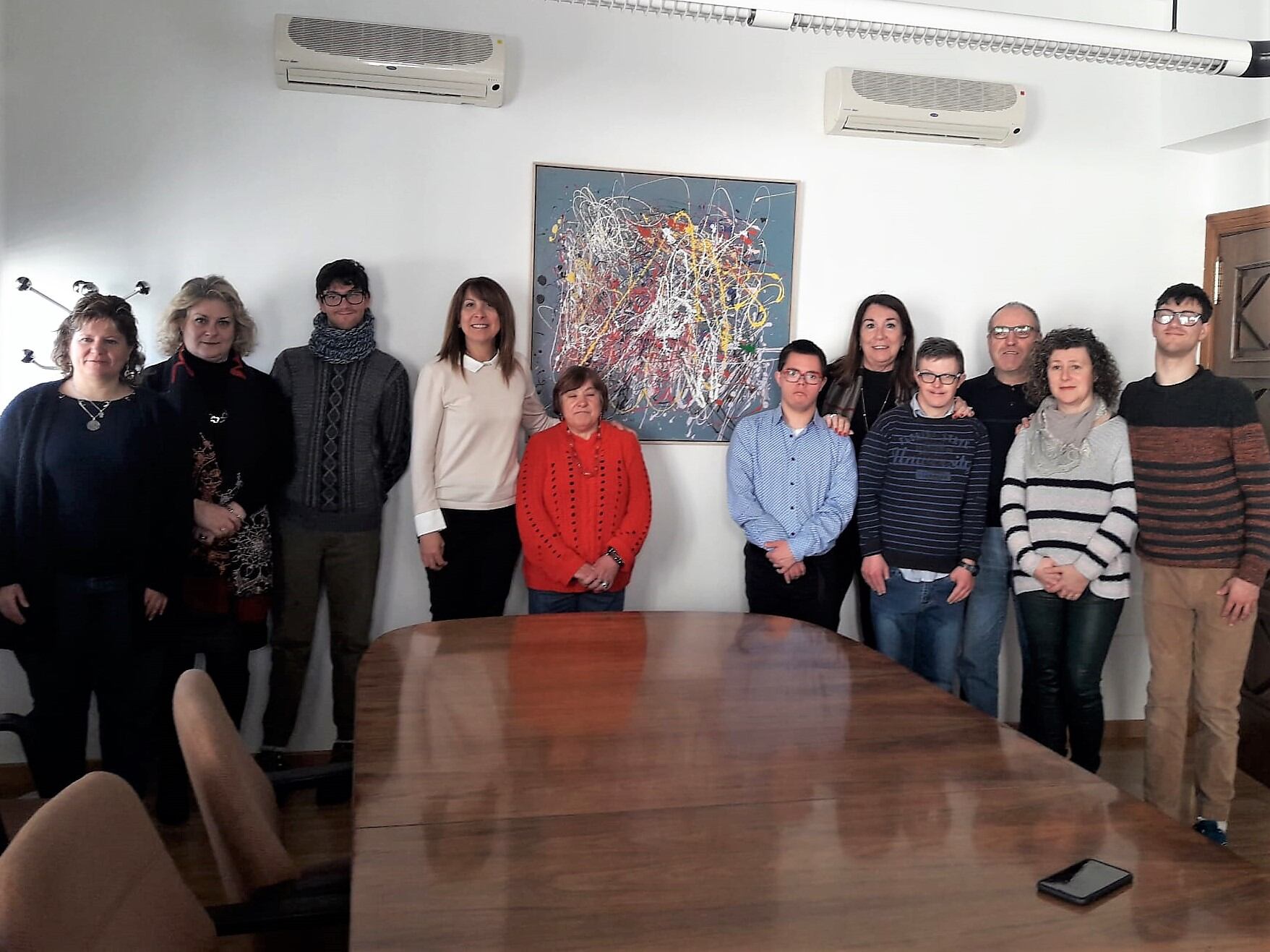 La obra refleja con su colorido “ la alegría de los usuarios del centro de Martillué”, ha sido colgado en la sala de comisiones