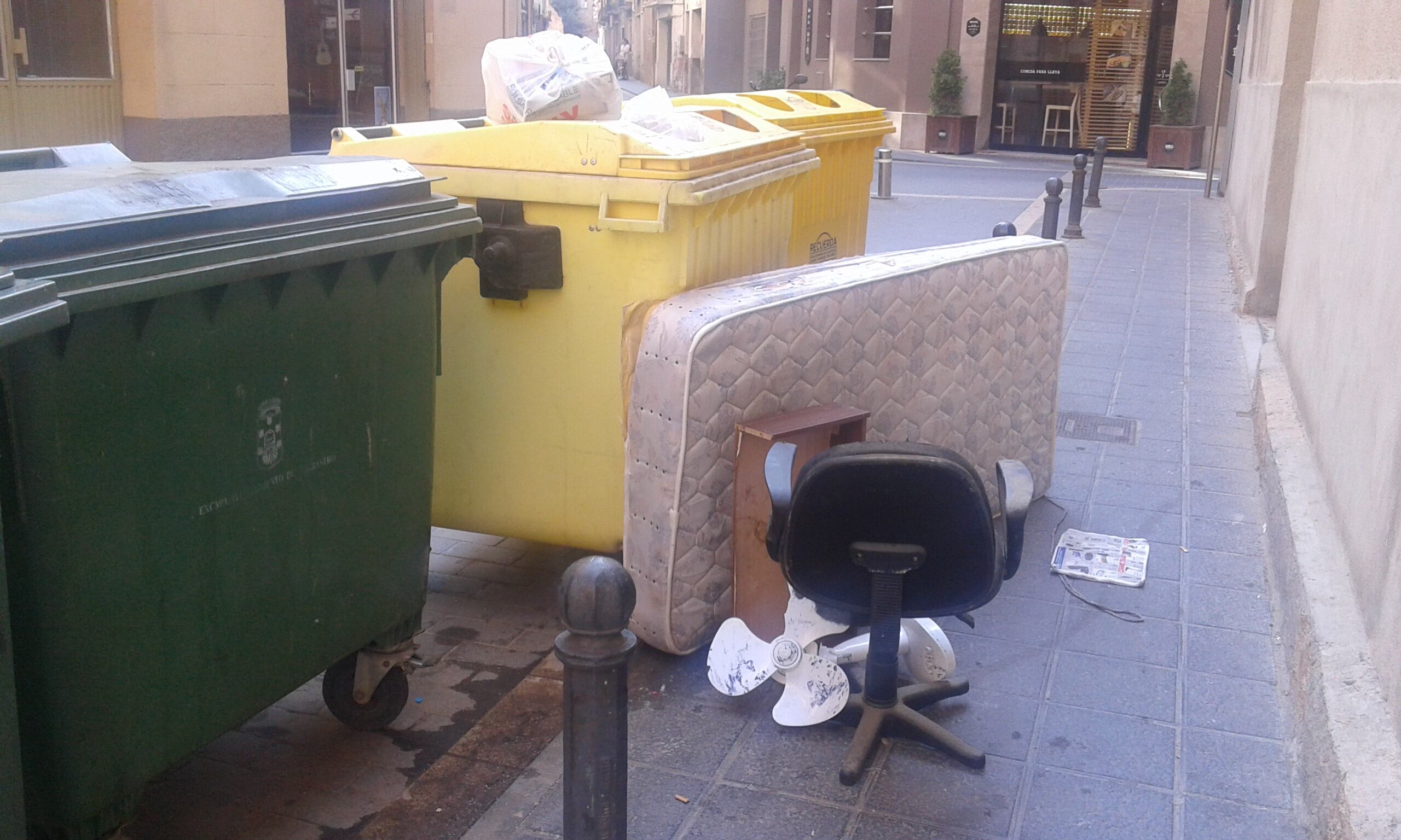 Los vecinos, que han enviado una foto a esta redacción, piden que se retiren con rapidez puesto que dan una mala imagen de la ciudad. También destacan el mal olor de los contenedores y consideran que se deberían lavar con mayor frecuencia en esta época del año.