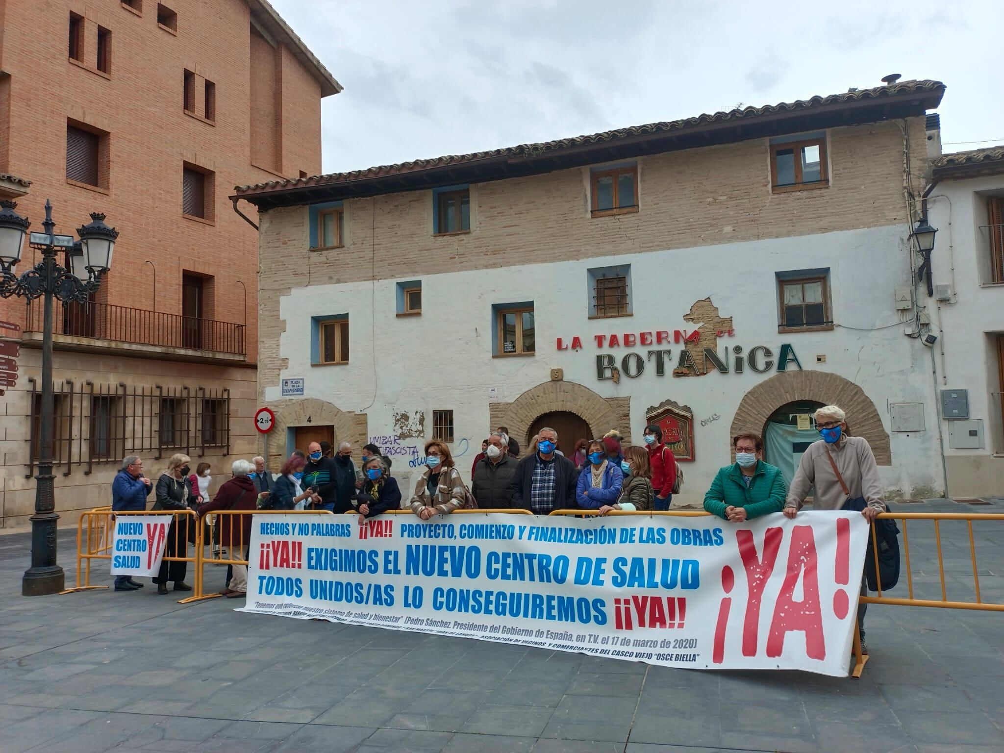 Como cada viernes, las asociaciones vecinales de los barrios Santo Domingo y San Martín, Perpetuo Socorro y el Casco Viejo volvían a concentrarse para reclamar cuanto antes la construcción del nuevo centro de salud Perpetuo Socorro. Pero esta vez no solo lo hacían en el centro sanitario provisional, sino también a las puertas del Museo de Huesca.