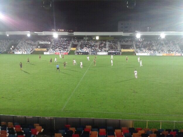 Partido vibrante e intenso el que disputaron los dos equipos con un Huesca que por fin dio muy buenas sensaciones y supo ganar en un complicado campo y además hay que añadir las condiciones con una intensa lluvia durante casi todo el encuentro que acompañó el desarrollo del mismo.