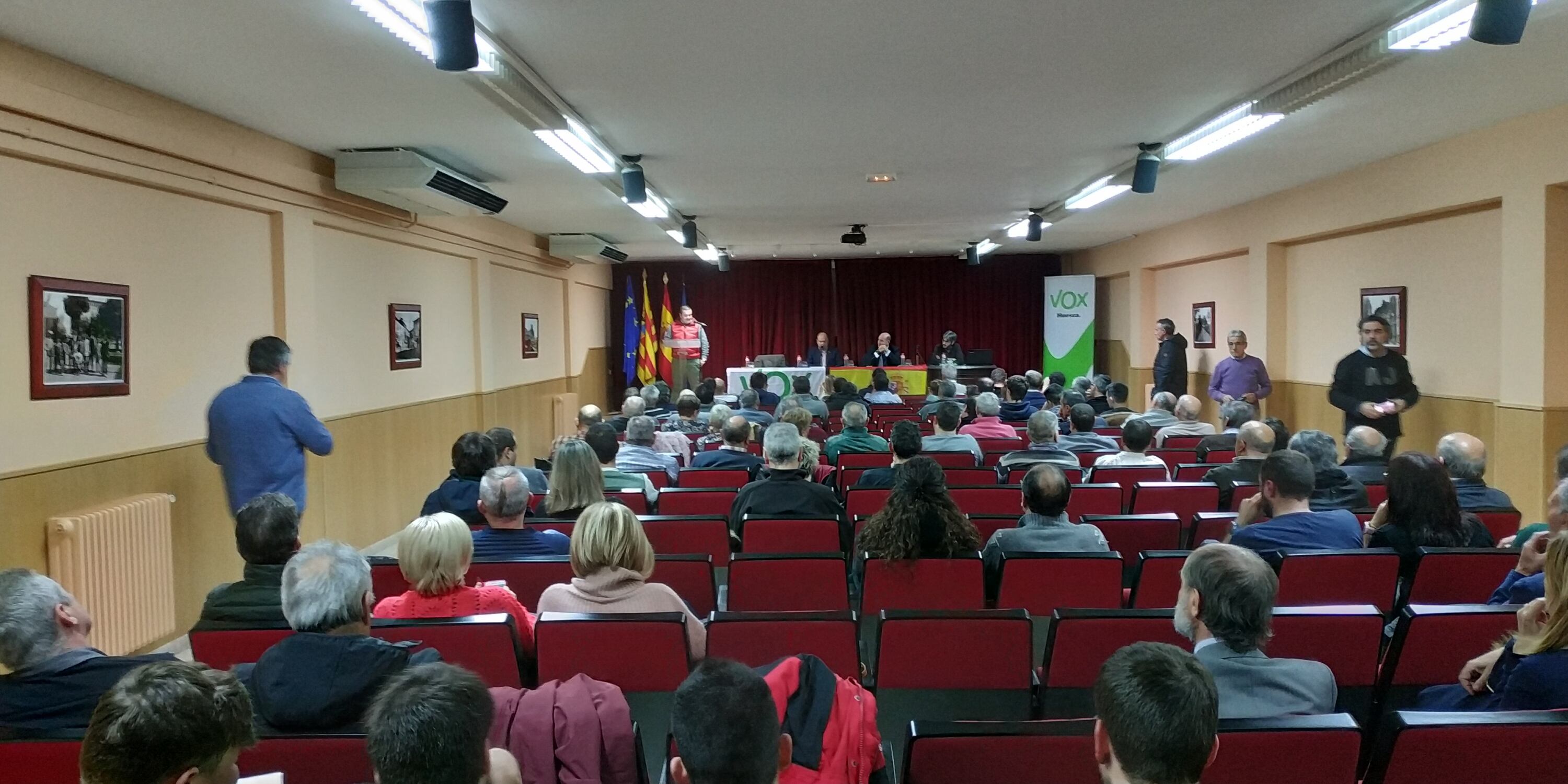 El Salón de Actos de la Casa de la Cultura acogía el acto de presentación de VOX en Monzón donde quieren formalizar una candidatura de cara a las próximas elecciones municipales. La expectación creada en los últimos días se traducía en unas tres cuartas partes del aforo, unos 120 asistentes. En el exterior Policía Local y Guardia Civil hacían labores de vigilancia sin que hubiera ningún tipo de incidente.