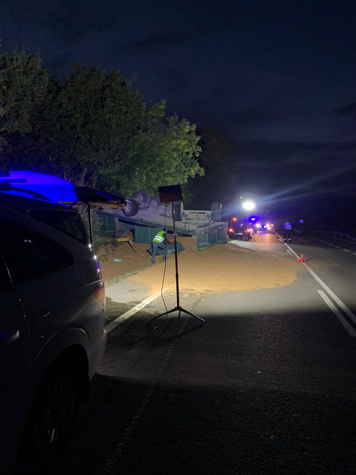 En el suceso caída parte de la carga por la vía por lo que era necesario cortar parte del carril hasta limpiar la carretera. Durante estas labores la Guardia Civil daba paso alternativo.