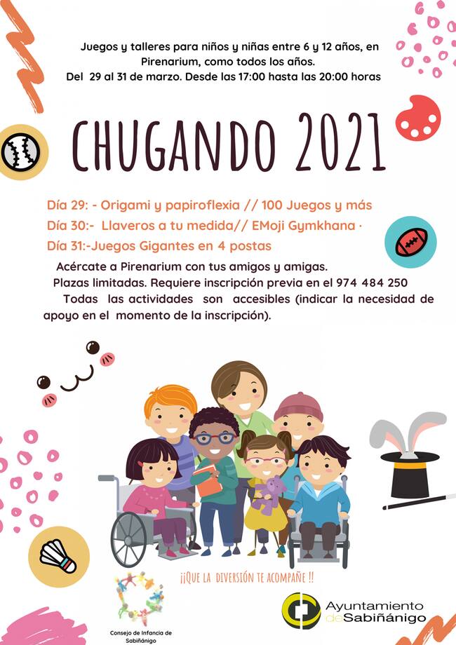 Chugando es una iniciativa conjunta del Ayuntamiento y del Consejo de Infancia de Sabiñanigo. Todas las actividades son accesibles (indicar la necesidad de apoyo en el momento de la inscripción).