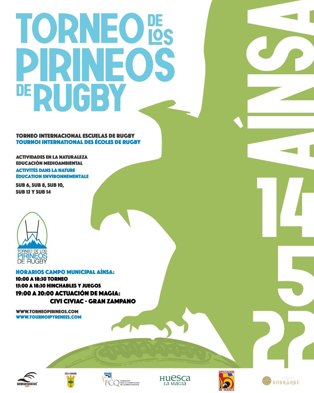 Y es que en este torneo no sólo se juega a rugby: los equipos harán actividades de educación medioambiental, podrán ir a visitar el ecomuseo de Aínsa, verán un aporte de comida a buitres, alimoches y quebrantahuesos por parte de la Fundación para la Conservación del Quebrantahuesos… todo eso además de los hinchables, las rutas de senderismo, y el colofón de Civi Civiac, con un espectáculo premiado a nivel internacional.