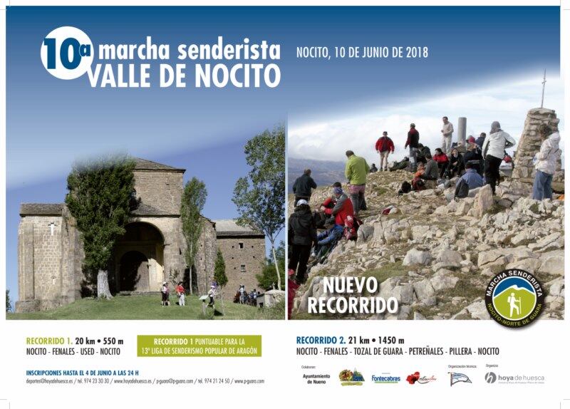 La Marcha Senderista Valle de Nocito celebra su décimo aniversario, con dos recorridos diferentes uno por la cara norte de Guara (Refugio de Fenales, Used, Bentué, San Úrbez) de 20km y 550m de desnivel y otro que asciende por el Refugio de Fenales a la cima del Tozal de Guara (2.070m) completando un recorrido de 21km y 1450m+.