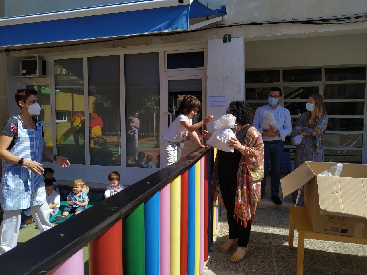 Los niños de 0-3 años de la escuela infantil han sido los primeros en recibir el ‘papelón’. A partir de las 10.15 de la mañana, miembros de la corporación municipal, con la alcaldesa Gemma Betorz al frente, han repartido 47 bolsas de dulces entre los pequeños. El acto se celebraba en el patio exterior de la escuela.