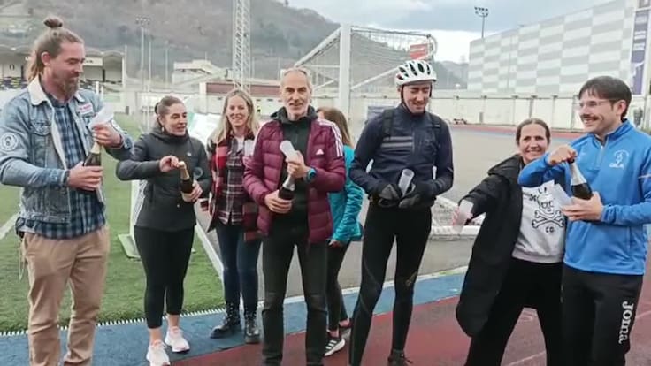 El último en unirse a la fiesta fue el presidente del club, Jesús Hevia, que se encontraba en Oviedo encargando los trofeos para la San Silvestre y que muy feliz apuntó lo bien que iba a venir el dinero en la zona, donde había tanta gente pasándolo mal por el cierre de las minas y las térmicas.