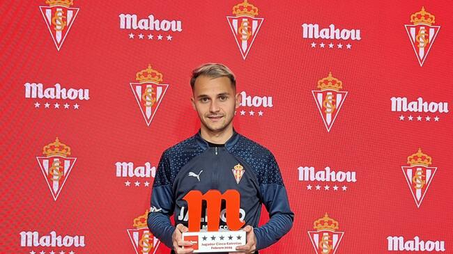 Fran Villalba recoge el trofeo Jugador Cinco Estrellas como mejor futbolista del Sporting del mes de febrero. / Cadena SER