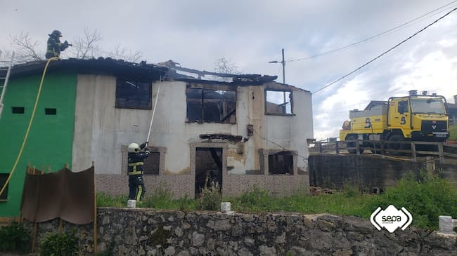 También de anoche, otro fuego se ha declarado en una vivienda de dos plantas que se estaba reformando en Lada, en Langreo. En este caso el fuego tan sólo ha causado daños en la cubierta del inmueble.