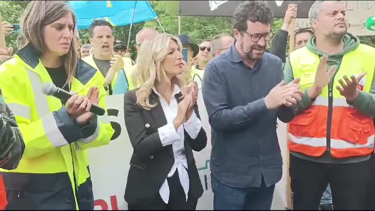 Yolanda Díaz arropa a los trabajadores de Saint Gobain en Asturias / Silvia Rúa