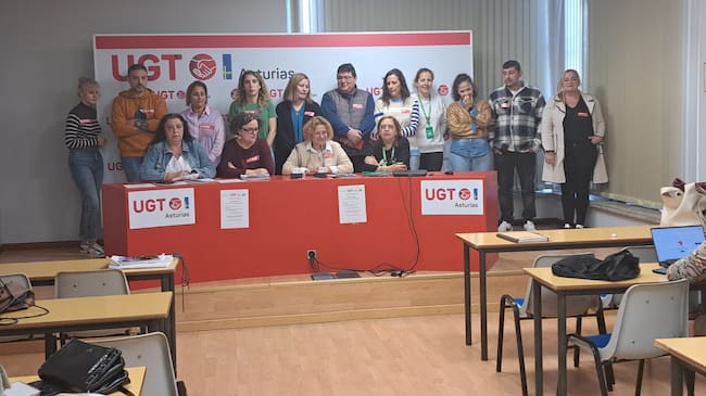 Los delegados sindicales de los supermercados afectados posan en la sede de UGT en Oviedo.