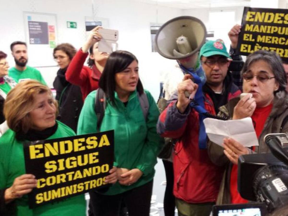 Activistes de la Plataforma d'Afectats per la Hipoteca ha irromput en un local d'Endesa al centre de Barcelona per reclamar que es compleixi la llei antipobresa que garanteix que no es talli la llum a qui no pugui pagar