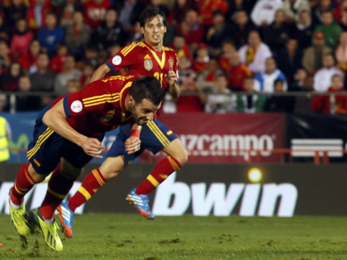 En un partido soso y aburrido, dos goles en la segunda parte colocan a España con pie y medio en el Mundial de Brasil