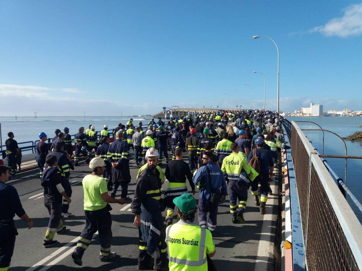 Más de mil trabajadores de Navantia Puerto Real cortan el puente Carranza