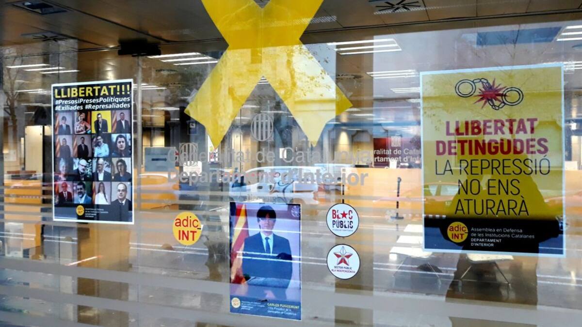 Algunas conselleries catalanas vuelven a exhibir el lazo amarillo en la fachada