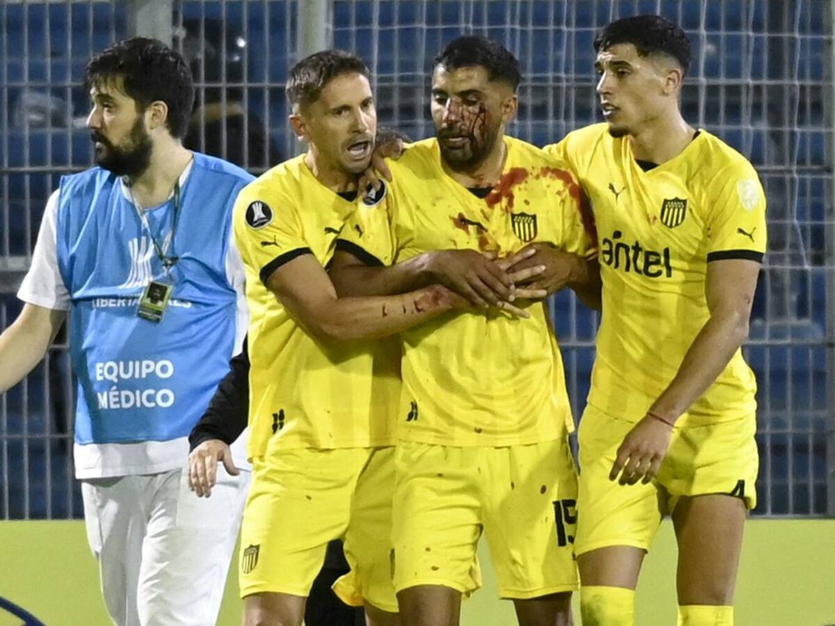 Maxi Olivera, jugador de Peñarol, fue alcanzado por una piedra en la cara. Los graves incidentes desde la grada del Gigante de Arroyito no impidieron que el encuentro se completase
