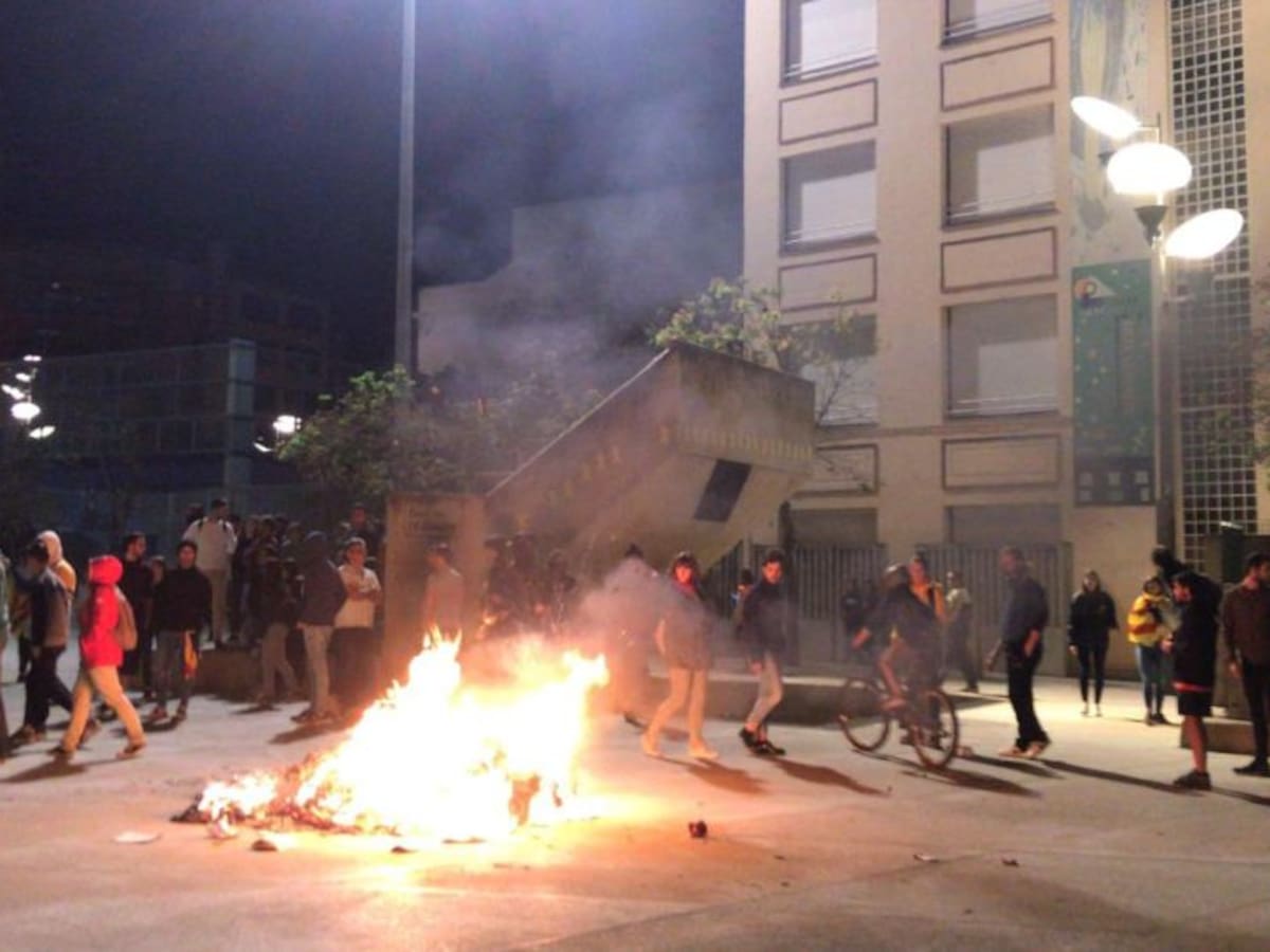 Cremen contenidors a Gran Via Jaume i, Plaça Catalunya, Plaça 1 d'Octubre i munten una barricada al carrer Nou La Policia Nacional dispara pilotes de goma per dispersar una concentració davant la seva comissaria de Pedret