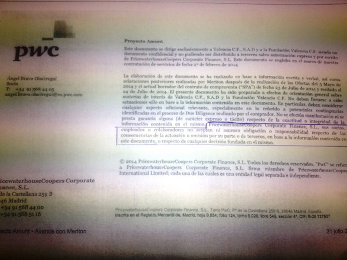 La Cadena SER destapa el informe de Price Waterhouse Coopers por el que los Patronos de la Fundación VCF aceptaron la venta a Peter Lim el pasado 31 de julio
