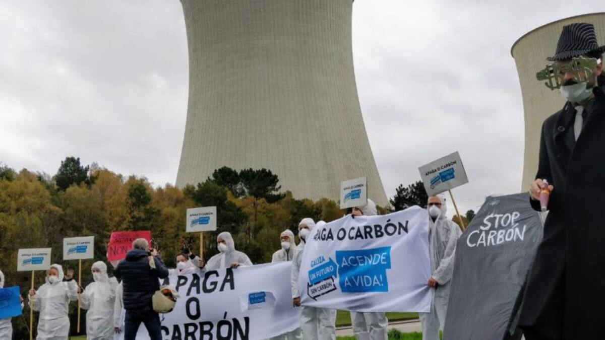 Protesta de Greenpeace en Meirama para exigir su cierre