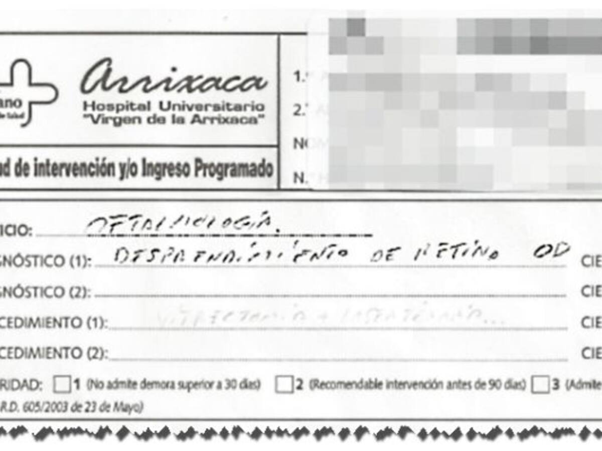 Una dona de 66 anys de Sant Cugat del Vallès ha hagut de fer més de 600 quilòmetres per carretera per operar-se d'un despreniment de retina, després que es neguessin a intervenir-la a Múrcia, on la van diagnosticar