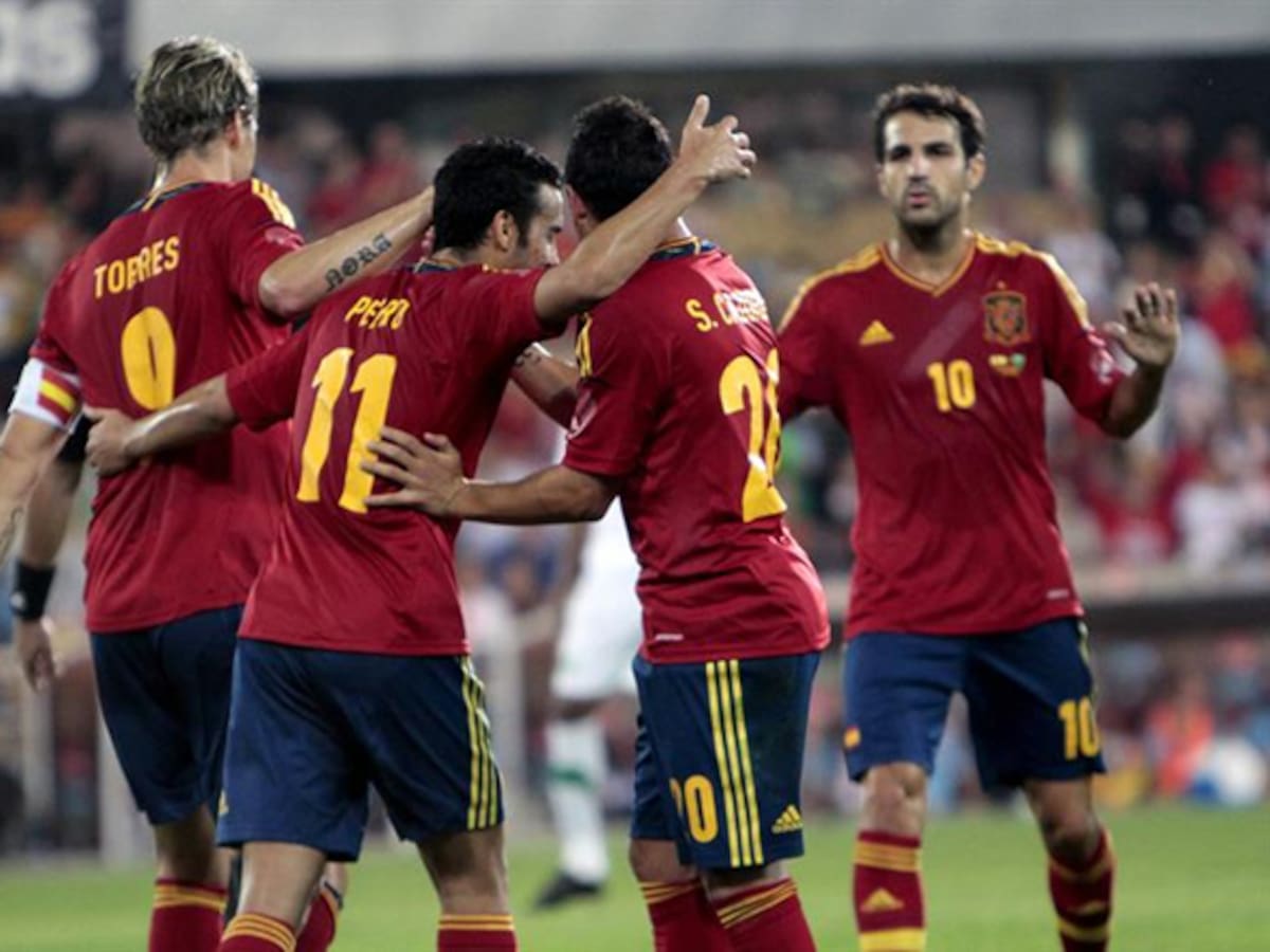 La selección muestra su poderío goleador y endosa una 'manita' a Arabia Saudí con goles de Cazorla, Villa, Xavi y dos de Pedro