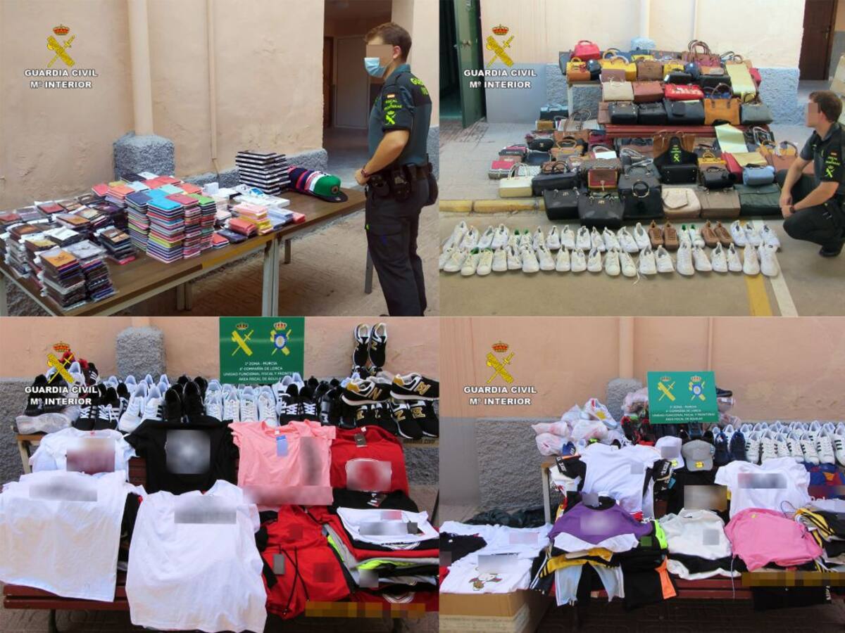 La Guardia Civil ha intervenido ropa deportiva, gorras, zapatillas y accesorios de telefonía móvil en cuatro tiendas