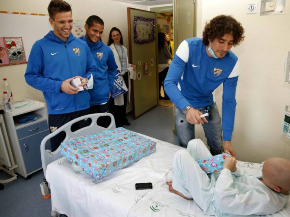 Los jugadores del Málaga visitaron la planta de Oncología del Hospital Materno Infantil donde entregaron regales a los niños internados