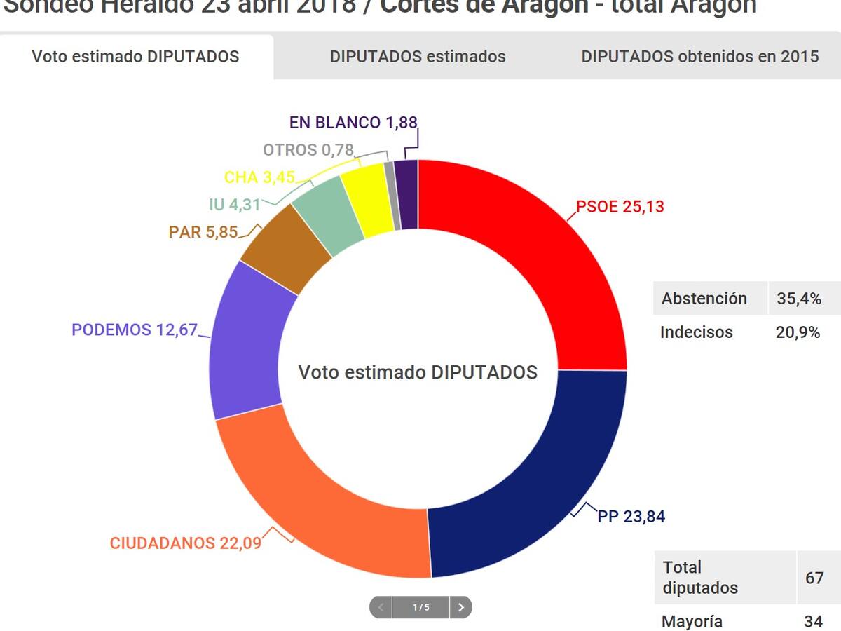 La encuesta de Heraldo de Aragón augura pocos cambios al frente de las instituciones, aunque Ciudadanos será decisivo para formar gobiernos estables