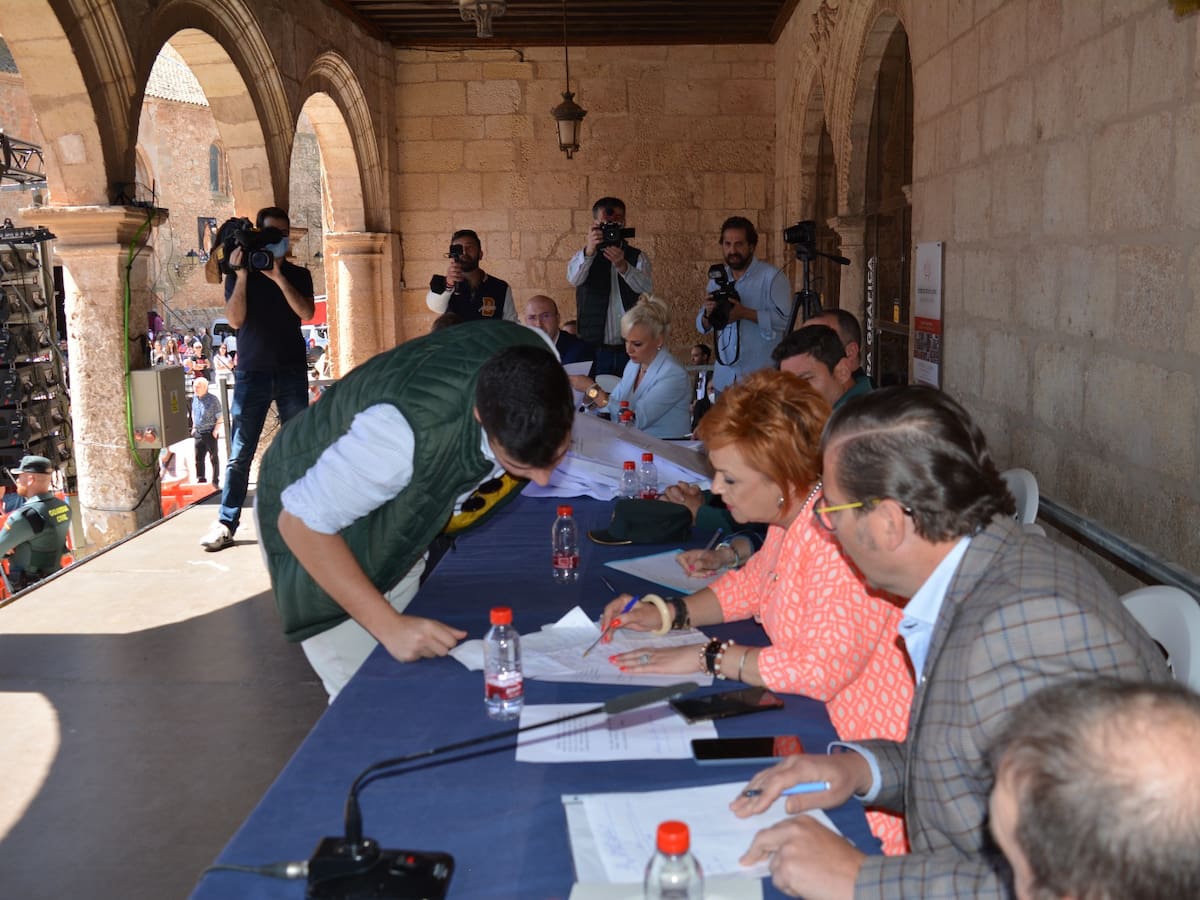 El rematante de 2022 es Antonio Brox Esteso y las andas de la Cruz se han adjudicado a Jorge Martínez por 5.800 euros en la tradicional subasta, con una Plaza Mayor repleta de sanclementinos
