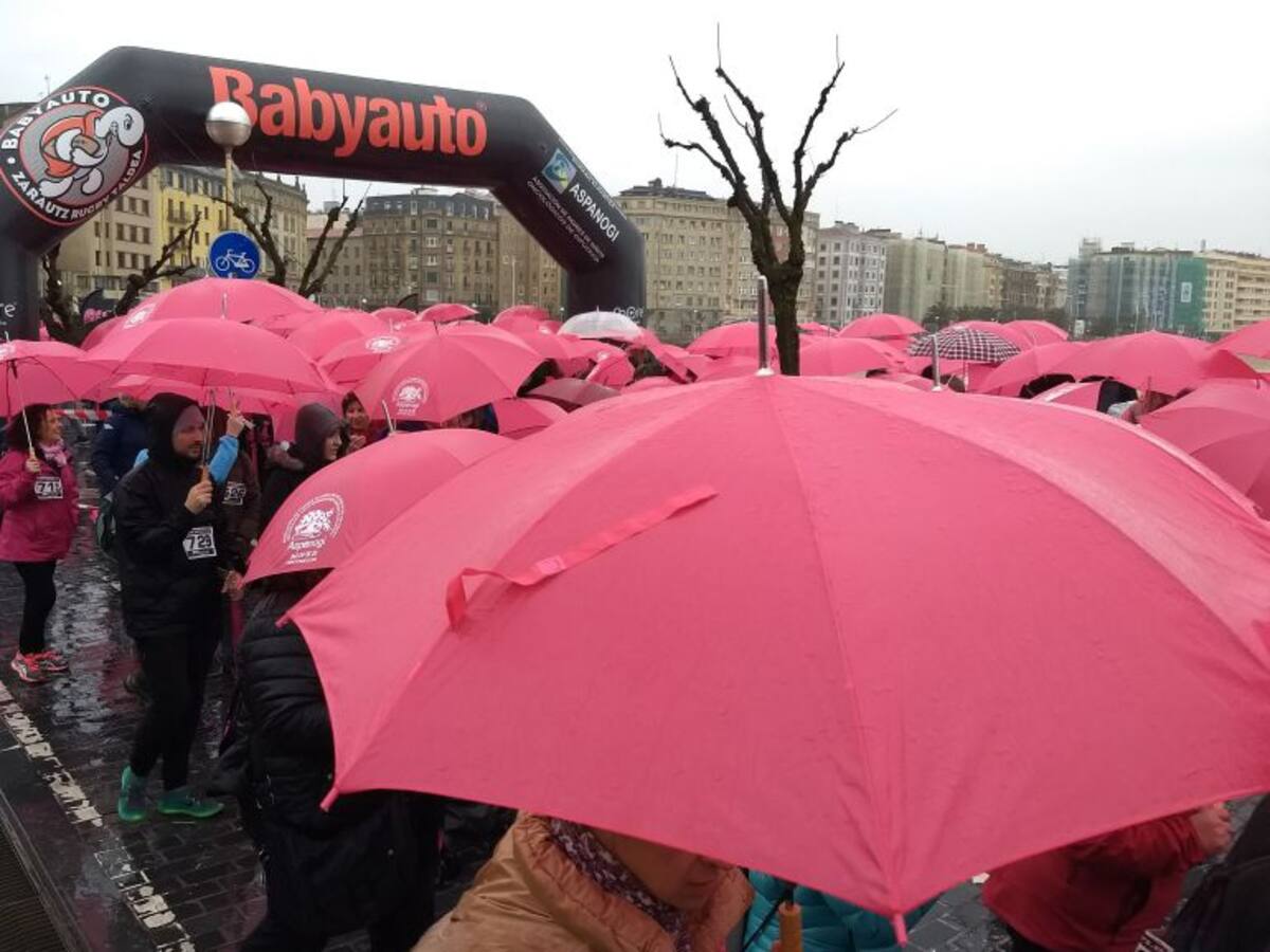 Más de 600 personas han recorrido los 6 km que separan Sagües del Peine del Viento, desafiando a la lluvia, en la marcha solidaria a favor de Aspanogi