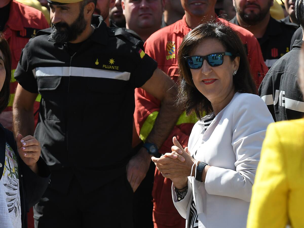 La ministra de defensa enmarca el fuego imposible de extinguir por la presencia de material explosivo en el cambio climático y la ola de incendios que ha arrasado el país este verano