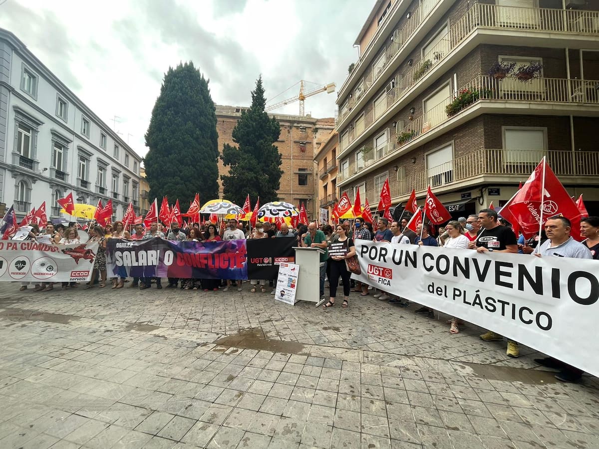 Los sindicatos se han concentrado este miércoles frente a la sede de la Confederación Empresarial de la Comunitat Valenciana (CEV)