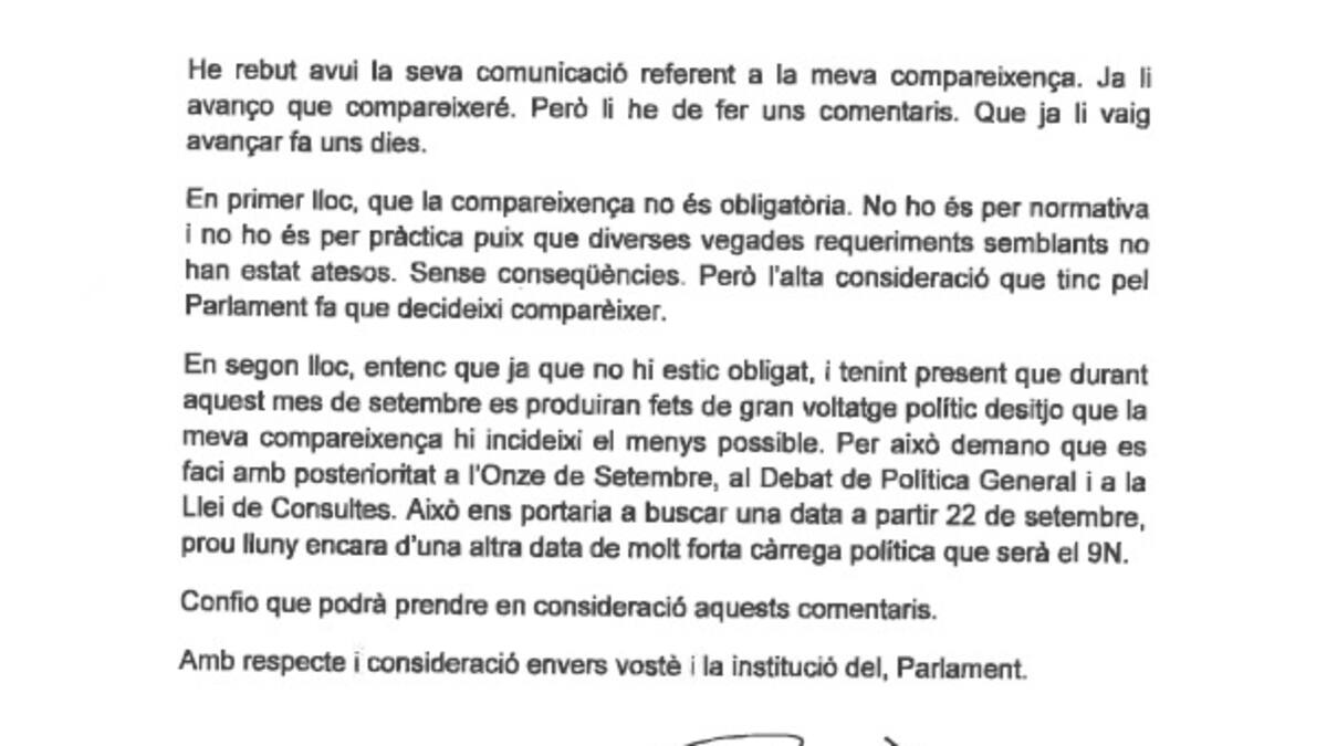 El president señala como pilares del proceso la unidad del frente soberanista, en clara referencia a ERC, y el "clamor pacífico y democrático" del pueblo catalán